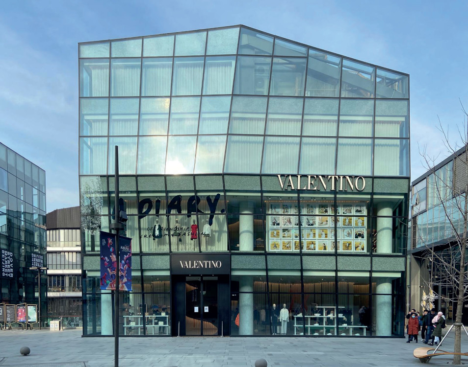 Situé dans un ensemble urbain conçu par Kengo Kuma et Oval à Sanlitun, l’un des quartiers les plus dynamiques et symbole de renouveau culturel de Pékin, le flagship s’inscrit dans un site composé de quatre bâtiments autour d’une place en contrebas. Le bâtiment est issu d’une réhabilitation. Il accueille des espaces de vente, des salons VIP avec une terrasse privée au dernier étage et un restaurant.