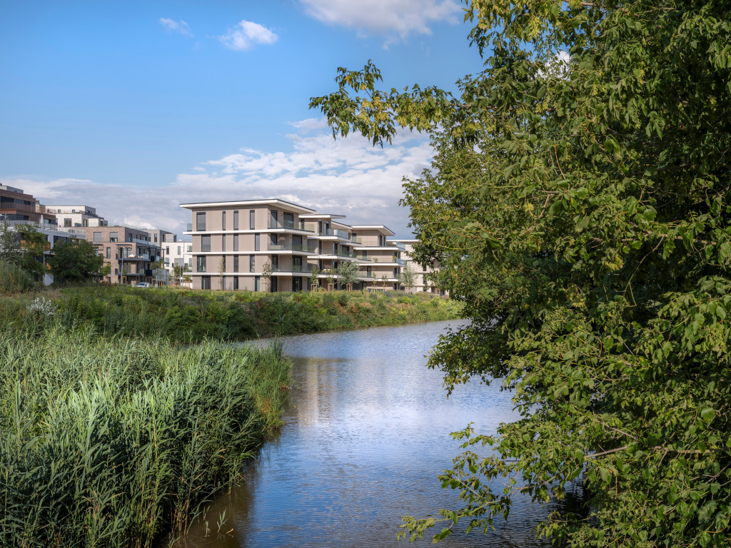 Au nord, des maisons en bande sont implantées sur la partie la plus élevée du terrain, offrant des vues sur le paysage naturel. Les « park houses », situées à l’est et à l’ouest, délimitent la frontière du parc résidentiel central. En bordure d’eau, au sud du site, se trouvent les « lake houses ». La diversité des types d’appartements et la flexibilité des agencements répondent aux besoins résidentiels évolutifs, offrant une alternative durable à la maison individuelle. Le projet visant à proposer des logements modulables, adaptés aux nouveaux modes de vie et de travail.