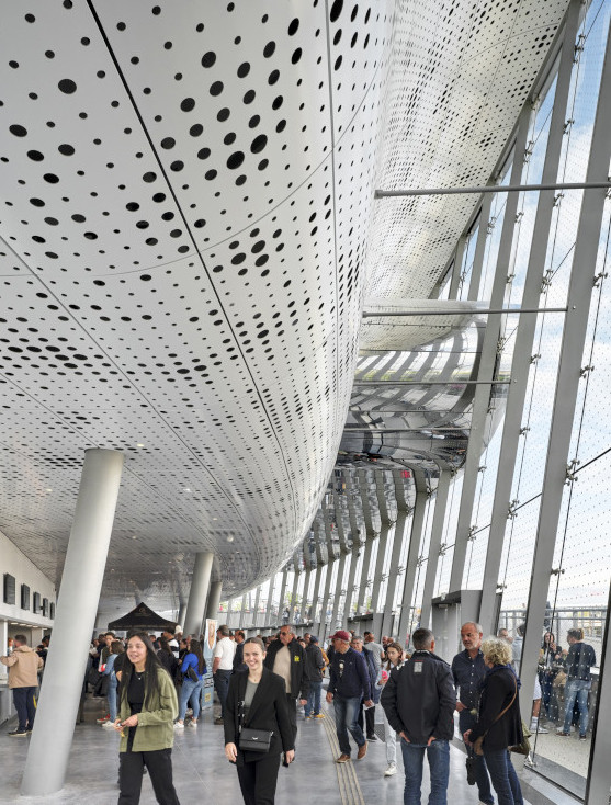 Par ses courbes dynamiques et sa grande façade ouverte sur la cathédrale, son esplanade et sa « toiture-jardin belvédère », le nouvel équipement culturel et sportif devient le vecteur identitaire du nouveau quartier du pôle gare et un lieu à vocation citoyenne. La salle en forme de chaudron et son déambulatoire en agora circulaire offrent un confort visuel optimal, et renforcent le sentiment de communion lors des évènements.