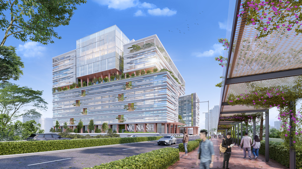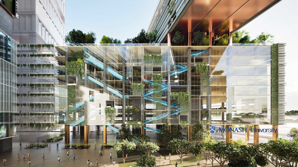 L’Université Monash Malaisie a annoncé en 2025 son partenariat avec City Sdn Bhd, promoteur du programme d’aménagement du quartier Tun Razak Exchange, pour la construction d’un nouveau campus au coeur de Kuala Lumpur. Imaginé par Grimshaw, ce projet, l’un des plus gros jamais entrepris à l’étranger par l’université, s’inscrit dans le périmètre de Tun Razak Exchange (TRX), un programme d’aménagement de 140 000 m² visant la création du nouveau quartier financier de Kuala Lumpur. Ce campus vertical doit son architecture à la densité du tissu urbain environnant et à la volonté de l’université de proposer un écosystème éducatif interactif et responsable de premier plan.