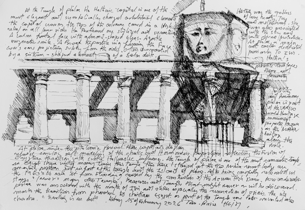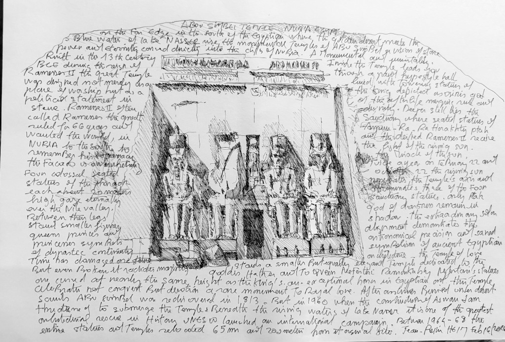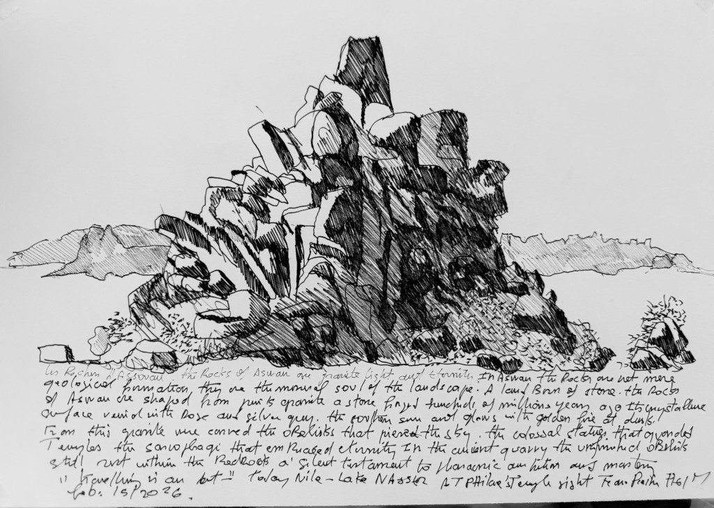 J’ai l’honneur d’y être exposé avec mes dessins issus de mes expéditions dans les oasis d’AlUla*** et de Siwa — deux territoires qui partagent cette même philosophie constructive : vivre en symbiose avec la terre. Des photographies et livres d‘Alberto Siliotti et une iconographie de l’historien Sergio Volpi illustrent cette histoire.