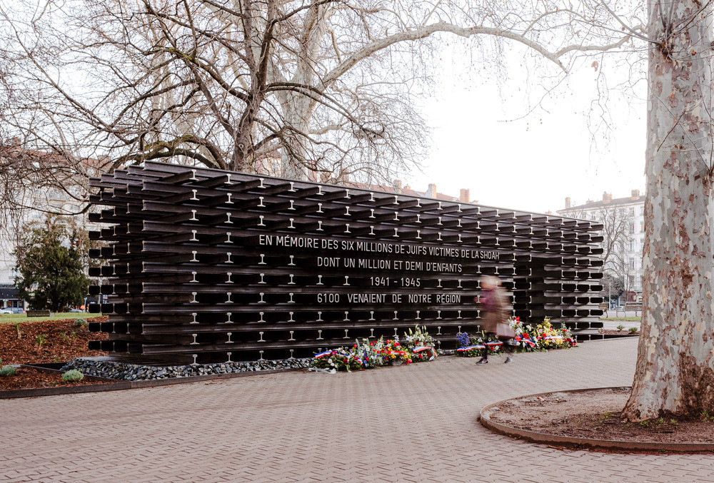 Imaginé par les architectes Quentin Blaising et Alicia Borchardt, ce projet est le fruit de deux décennies de lutte et de persévérance, porté par l’Association pour l’édification d’un Mémorial de la Shoah à Lyon, dont des anciens déportés et survivants d’Auschwitz faisaient partie, en tant que membres actifs et d’honneur. En 2023, un concours international a donné naissance à cette œuvre, sélectionnée parmi 96 propositions venues de 25 pays. Le résultat est un monument d’une puissance saisissante, où 1 173 mètres de rails en acier, entrelacés en quinconce, racontent une histoire tragique : celle des 1 173 kilomètres qui séparent Lyon du camp d’Auschwitz-Birkenau.