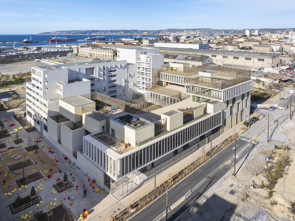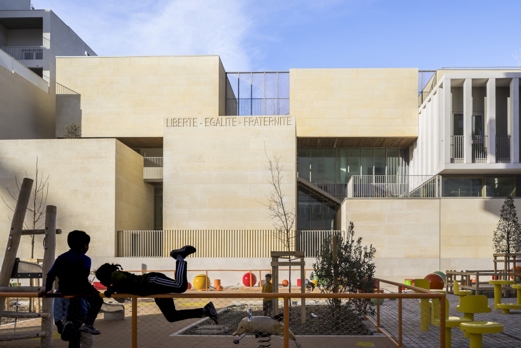 Au cœur de l’écoquartier des Fabriques à Marseille, l’agence Brenac & Gonzalez & Associés livre un groupe scolaire de 3 430 m² qui s’affirme comme une vitrine de l’architecture scolaire contemporaine. Plus qu’un équipement, ce bâtiment-paysage, incarne une réflexion manifeste : comment bâtir l’école du XXIe siècle, à la fois protectrice, ouverte et durable, au service des enfants et de la ville. Avec sa volonté de « faire vie avant de faire ville », l’agence place l’école comme fédérateur social.