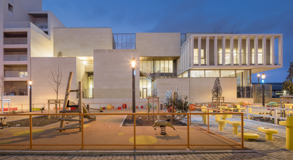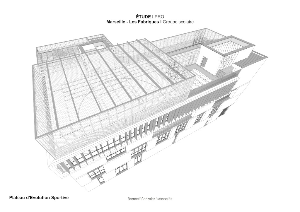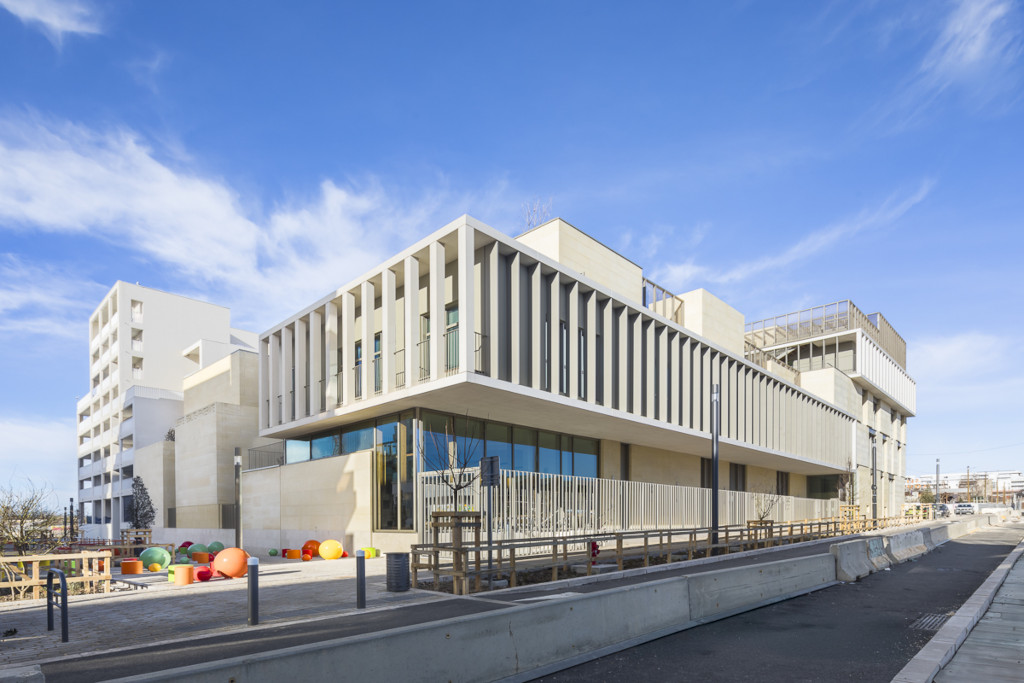 Au cœur de la ZAC Littorale, l’écoquartier Les Fabriques se développe autour de principes sociaux, architecturaux et paysagers. Dans ce cadre, l’EPA Euroméditerranée confie à Brenac & Gonzalez & Associés la conception d’un groupe scolaire réunissant sept classes de maternelle, dix classes de primaire, un pôle restauration, un pôle sportif et un logement de fonction. Situé à l’articulation de la Traverse de l’Extension et de la Rue Jardin, le nouvel établissement occupe une position stratégique, à la fois visible et accessible. Véritable repère dans la ville et lieu sûr pour les enfants, il devient le premier équipement fédérateur d’un quartier en devenir.
