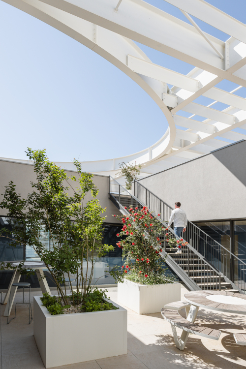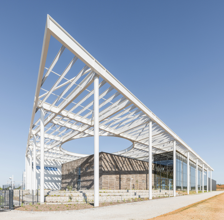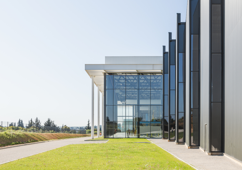 Avec ses volumes finement travaillés, son auvent monumental et ses façades vitrées, le bâtiment rompt avec l’image traditionnelle des sites de production. Loin des standards habituels du secteur industriel, il affirme une écriture architecturale exigeante, jouant sur le rythme, la transparence, la lumière et la mise en scène des espaces.