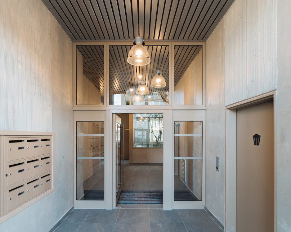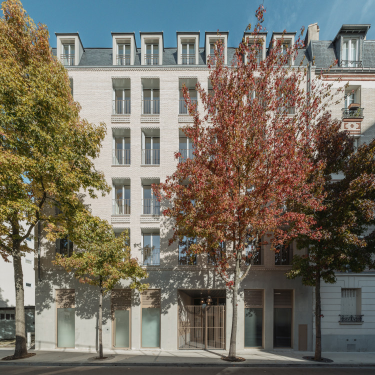 Sur rue, les façades en briques – avec leurs modénatures en « dents d’engrenage » alternant boutisses en diagonale et panneresses droites – sont inspirées par le patrimoine architectural vincennois et inscrivent harmonieusement les bâtiments dans le génie local.