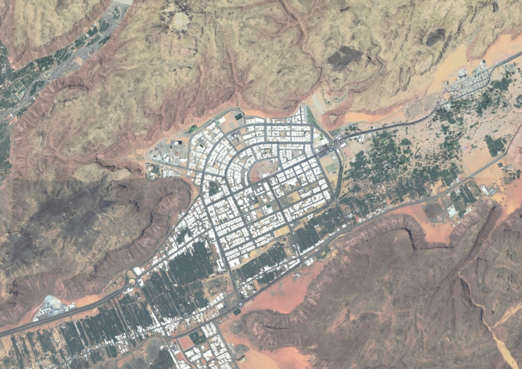 Au sud de la ville ancienne s’est construite l’autre ville dans les années ‘50, sur le modèle de Constantinos Doxiadis (3), un urbaniste grec qui a dessiné le plan de Ryad. Ce plan a été reproduit dans toute l’Arabie saoudite, avec des parcelles de 600 m² par habitat, un mur qui entoure chaque maison avec un retrait de deux mètres minimum autour de la maison, et les maisons à côté les unes des autres. Ce sont de petits îlots résidentiels, qui possèdent chacun une petite place, une mosquée et une école. L’idée étant de ne pas marcher plus de cinq minutes pour aller à la mosquée, il y a beaucoup de mosquées. Les grandes artères où l’on circule en voiture sont des avenues très larges, sans ombre. C’est dans cette ville qu’ont été transférés les habitants de Al Ula Old City.