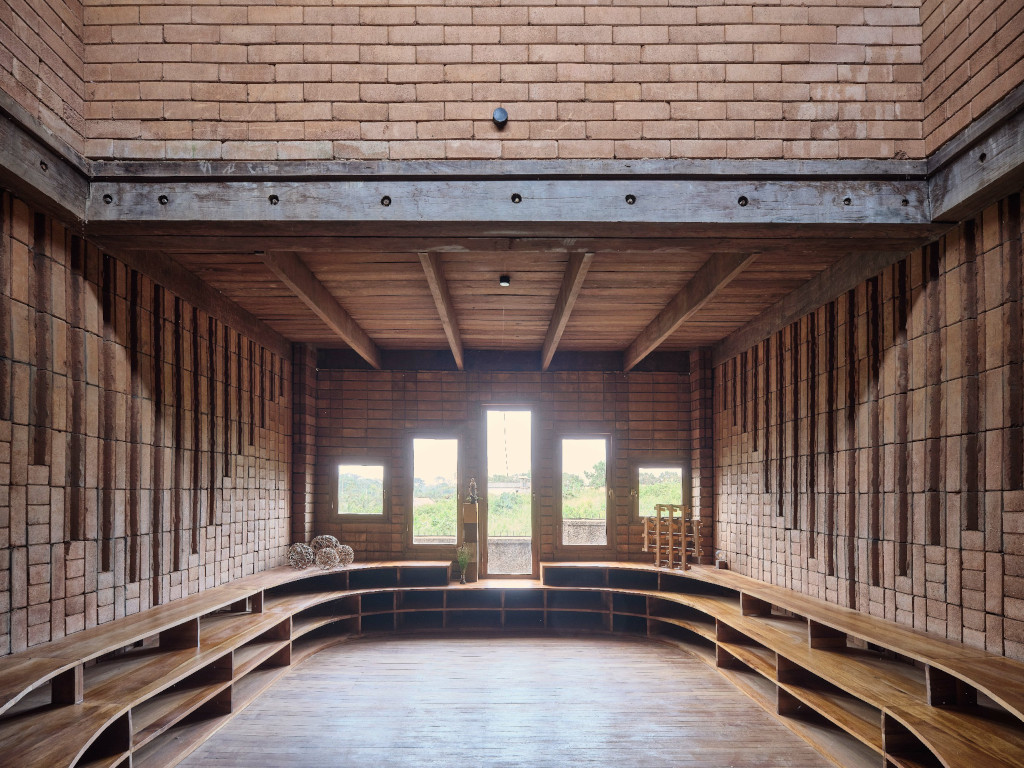 Les enceintes sont constituées de briques de terre crue aux motifs variés, laissant filtrer la lumière entre l’intérieur et l’extérieur. Il existe ainsi une continuité entre la terre rougeâtre locale et le bâtiment qui repose dessus. Un fournisseur local de briques de terre a été sélectionné, utilisant une technologie de fabrication rudimentaire.