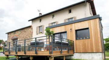Cybel Extension se veut le 1er réseau national spécialiste de la conception et de la réalisation d’extensions de maisons individuelles et de garages clé en main. En témoigne, réalisée sans maître d’œuvre, cette extension contemporaine en bois et aluminium avec terrasse sur pilotis, sur une maison ... [Lire la suite]