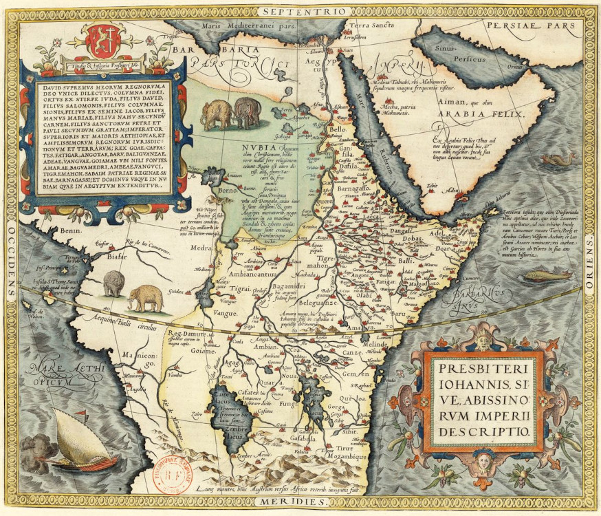La première nous entraîne dans les mondes inexplorés et plonge le visiteur au cœur de l’iconographie cartographique. Au-delà des tracés géographiques, les cartes intègrent des figures fabuleuses empruntées aux sources antiques et religieuses et transmises à travers les encyclopédies médiévales. Ces créatures peuplent les marges des terres connues et témoignent de la manière dont l’imaginaire se projette sur les territoires à découvrir.