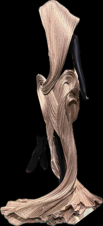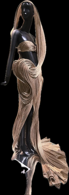 En 2025, est née « L’ascension d’or », de Gaurav Gupta, couturier, à Bénarès, en Inde. Une robe sculpture, architecture, et cosmos, dont la forme se tourne sur elle-même et pose le doute…