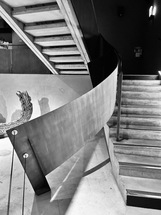 Au musée de la Musique les clavecins sont des bâtiments et ces bâtiments sont des paysages. Les escaliers sont des instruments. La rampe ressemble à une scie musicale (7) qui ressemble à la plaque de bois qu’il a planté dans la mer. Tout est relié. Tout fait sens.