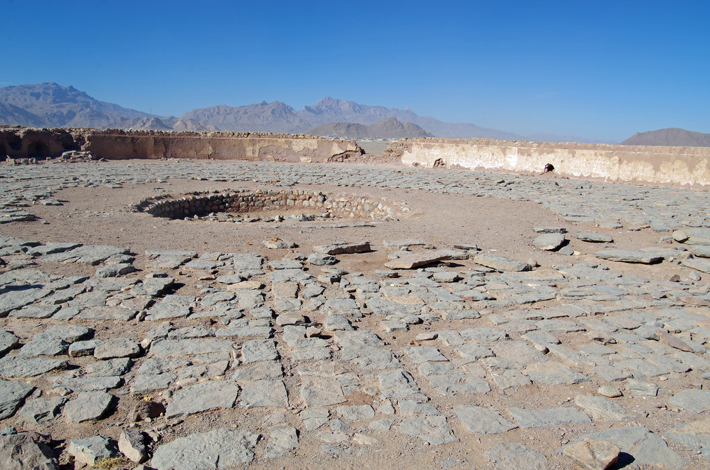 Les Dakhma sont généralement construites sur des collines, à l’écart des villes pour tenir les morts à distance. À Yazd elles dominent le paysage désertique. Cette pratique funéraire pour ne pas polluer terre et feu témoigne de cette sensibilité et rejaillit sur la manière de penser le sol, l’eau et l’air dans l’espace construit. Les corps sont mangés par les oiseaux et la matière retourne à la matière.