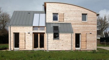 Cette maison à Riec-sur-Belon (Finistère), réalisée par l’agence morbihannaise a.typique Patrice Bideau et livrée debut 2016 est composée de trois volumes, dont l’abri-voiture en ossature bois avec un bardage à claire voie au Nord, du zinc anthracite à petites ondes à l’Ouest, et une toiture à ... [Lire la suite]
