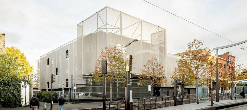 L’enveloppe de l’école 42, avant son extension, s’habillait d’une peinture noire et d’une couche de textile micro-perforé. Pour les façades de 42 Paris, AR Studio d’Architectures a pris le parti de fusionner l’existant et l’extension dans un seul objet qui sublime le double mouvement du noir, déjà présent, et de la nouvelle tôle perforée blanche. Quelques touches de bois, au niveau du balcon et au dernier étage, rendent lisibles l’enchaînement des volumes.
