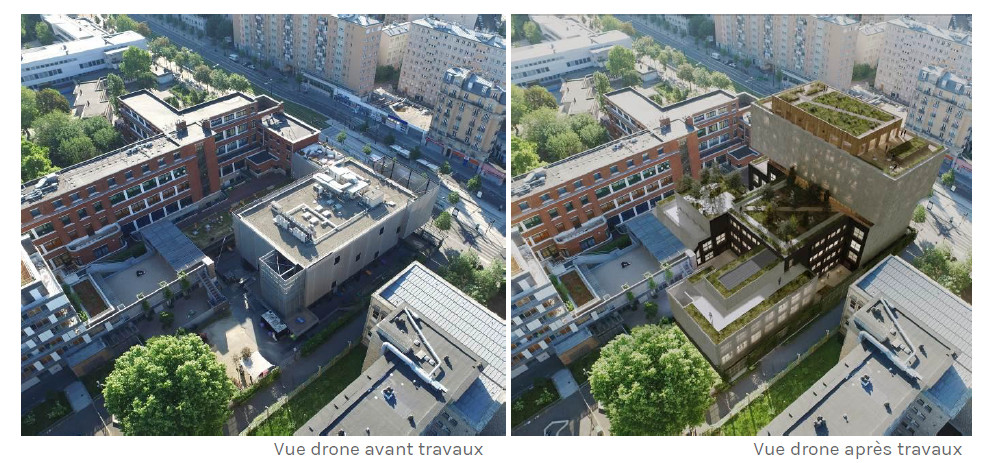 À Paris (XVIIe), pour 42 École des métiers numériques et NJJ immobilier maîtrise d’ouvrage, AR Studio d’Architectures (Adrien Raoul) a livré en mai 2025 l’extension/surélévation de l’école 42. Coût : n.c. Surface : 9 025 m² SDP. Communiqué.