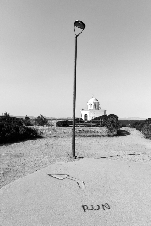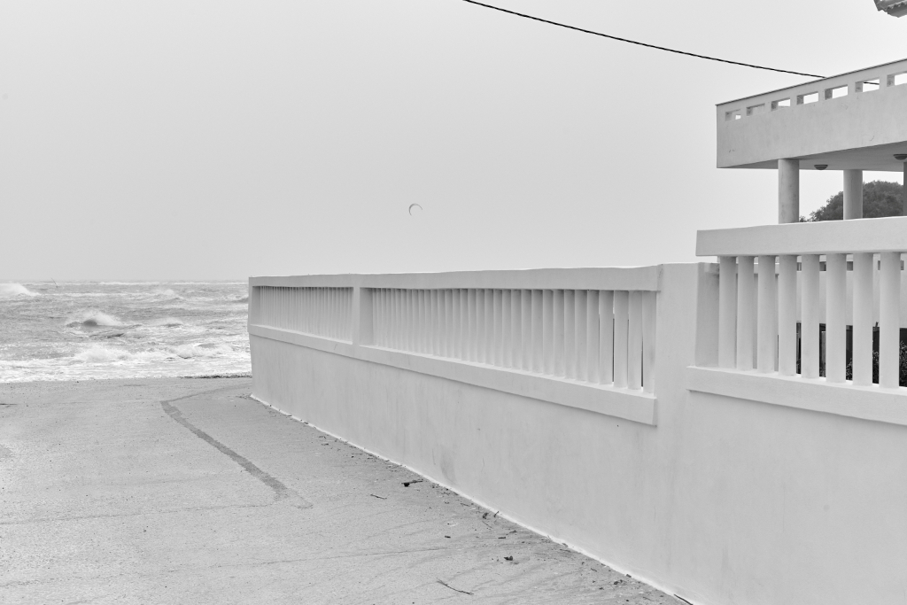 À Artemide, ce processus est lisible partout. Dans les bâtiments qui cessent d’être habités sans être abandonnés. Dans les infrastructures maintenues en état de veille permanente et les terrasses ouvertes sur une mer que personne ne regarde plus.