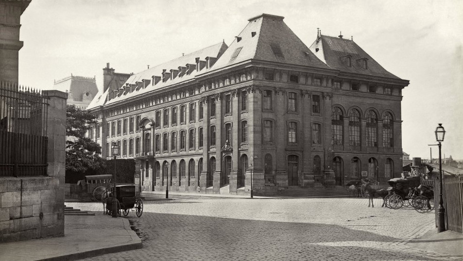 L’ancien hôpital des Enfants-Trouvés, photographie de Charles Marville, 1867 ; la chapelle occupait le pavillon de droite.