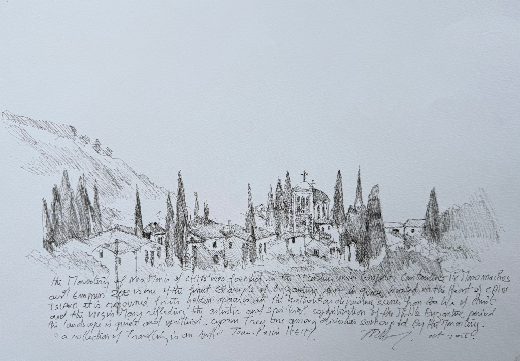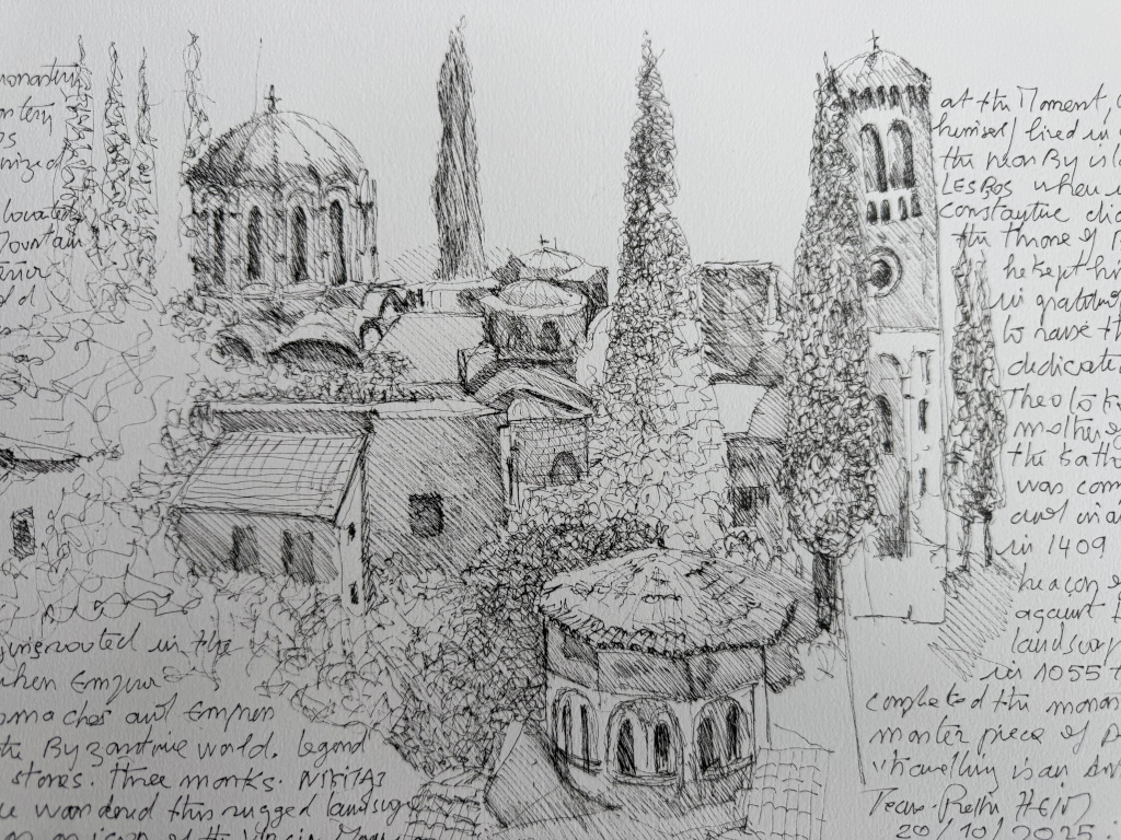 L’ensemble de ces découvertes, accompagnées de mes dessins et de mes observations, fera l’objet d’un ouvrage intitulé : « Les Monastères de Grèce — Témoins du patrimoine mondial de l’humanité ». Ce livre rassemblera les représentations et les récits de ces cinq monastères majeurs classés à l’UNESCO, mais aussi de nombreux autres sites qui participent à la grandeur et à la richesse spirituelle de la Grèce.