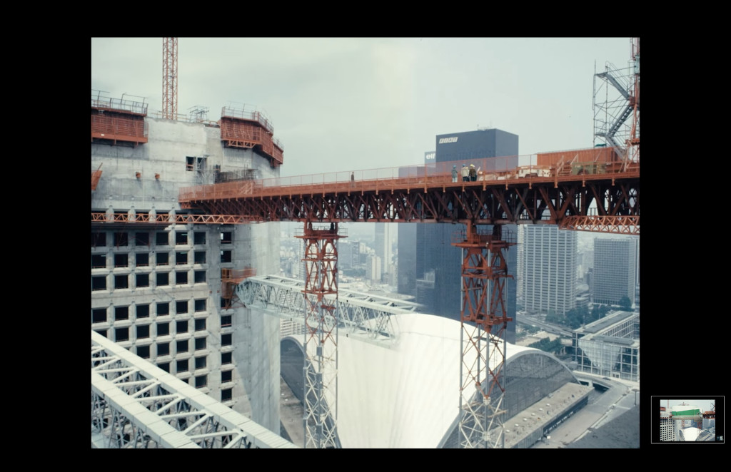 Filmer un bâtiment permet de se poser plusieurs questions dont celle de l’urbanisme, c’est-à-dire quelle place a le bâtiment dans son environnement. Dans le contexte du film, le quartier de la Défense avant que l’arche n’existe me semblait être le bon axe de travail. Qu’est-ce que c’était la Défense à ce moment-là ? C’est quoi ce quartier ? Où nous mettons-nous pour sentir un espace aussi grand.