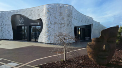 Sur ce projet, outre la fourniture de l’ossature secondaire Couliss’o et de cassettes perforées sur presse large, Gantois et les architectes ont opté pour les profils perforés et nervurés de la gamme Rythmic Elistic, le tout en aluminium classe 5 thermolaqué ral 9010 et teinte interpon D2015 précis Dark Bronze.