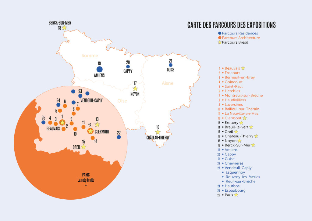 Le festival se déploie sur l’ensemble du territoire avec plus de 25 expositions en lien avec l’architecture et le bâti dans l’agglomération du Beauvaisis, à Clermont-de-l’Oise et dans la communauté de communes du Clermontois, et cette année dans l’Aisne avec le Familistère de Guise et l’Échangeur à Château Thierry.