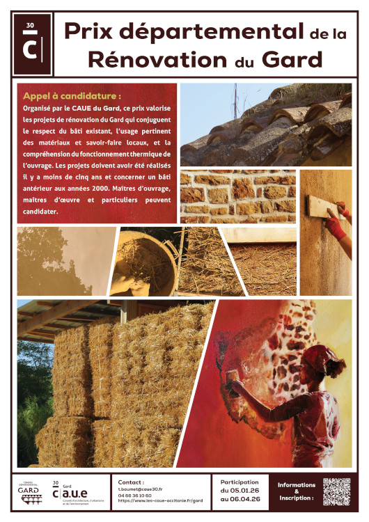 Ce prix met en lumière les qualités thermiques, architecturales, patrimoniales et environnementales des rénovations. Les projets retenus pourront être visités, photographiés et valorisés dans les actions de sensibilisation du CAUE du Gard.