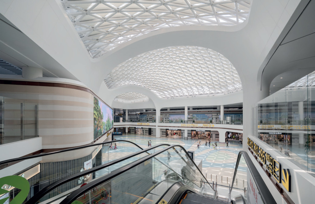 L’agencement du terminal en forme de E a été pensé pour optimiser la circulation des passagers et minimiser l’impact sur le terrain existant. La flexibilité, pour permettre d’ajuster en temps réel l’utilisation des espaces, a été une donnée clé. Partout, la lumière naturelle pénètre, avec en apothéose le dôme central vitré qui couronne un atrium à plusieurs niveaux. Les courbures intérieures, les matériaux et les tons rappellent la nature environnante et réinterprètent par endroits les coques en bois des navires, en référence à la Route de la soie maritime.
