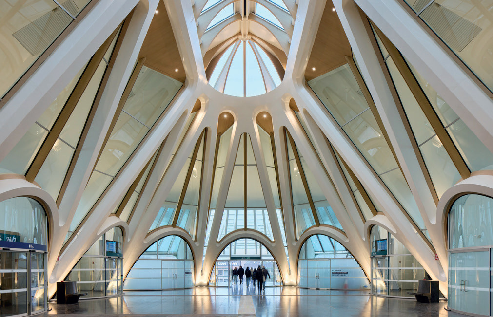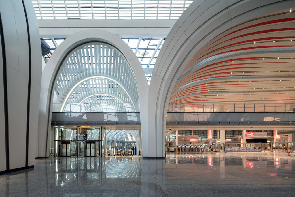 Les arcades traditionnelles de Canton, ici stylisées, inondent la gare de lumière naturelle et offrent une identité spatiale unique, monumentale et à échelle humaine. Une architecture inspirée.
