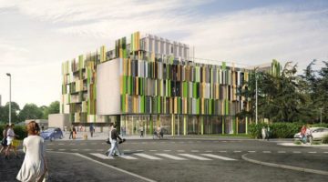 A Mons-en-Barœul (Nord), l’agence Coldefy & Associés (CAAU) a livré au printemps 2018 un projet de trois immeubles baptisé ‘Centralité de Mons’. Sur 6 295 m² et avec un budget de 4,4 M€, le projet est composé d’un habitat vertical de 45 logements (La Pépite), de deux immeubles collectifs de ... [Lire la suite]