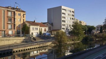 Le projet de 1 090 m², conçu par Taillandier Architectes Associés et livré en juin 2016, se situe boulevard de l’Embouchure, à Toulouse, entre une maison individuelle et un immeuble collectif, sur un terrain exigu. Sa façade principale est orientée sud, face au Canal du Midi, la façade arrière étant ... [Lire la suite]