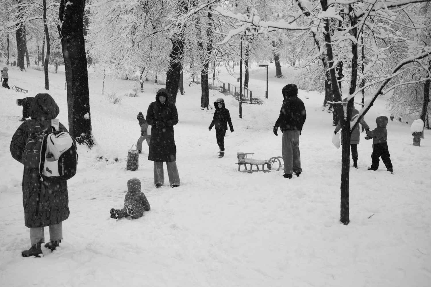 L’existence même de cet endroit paraît provisoire, incertaine, et la neige noie les pointillés imaginaires d’une frontière sans douane, qui n’existe que dans la tête de ceux qui veulent bien y croire.