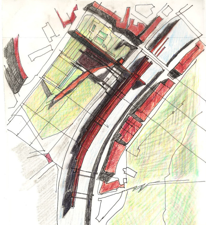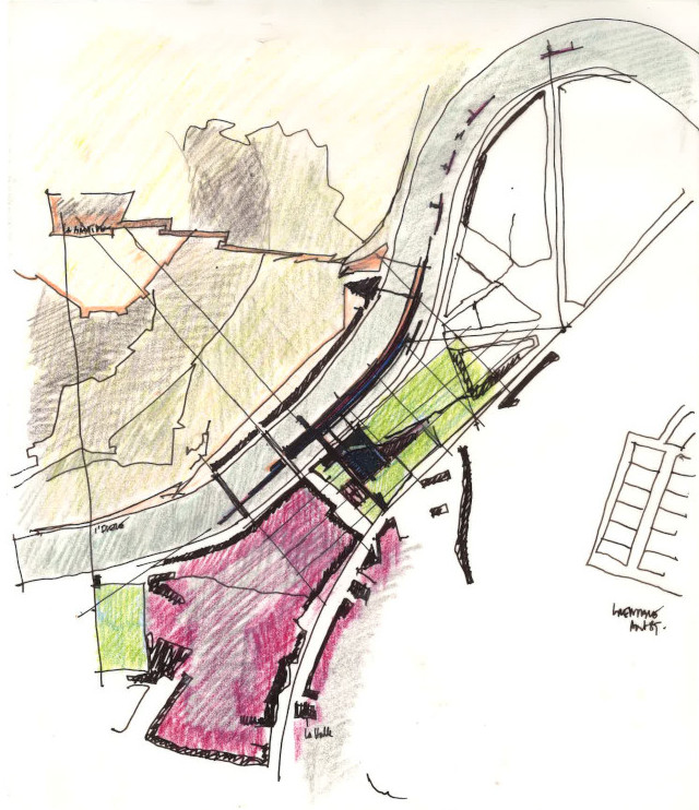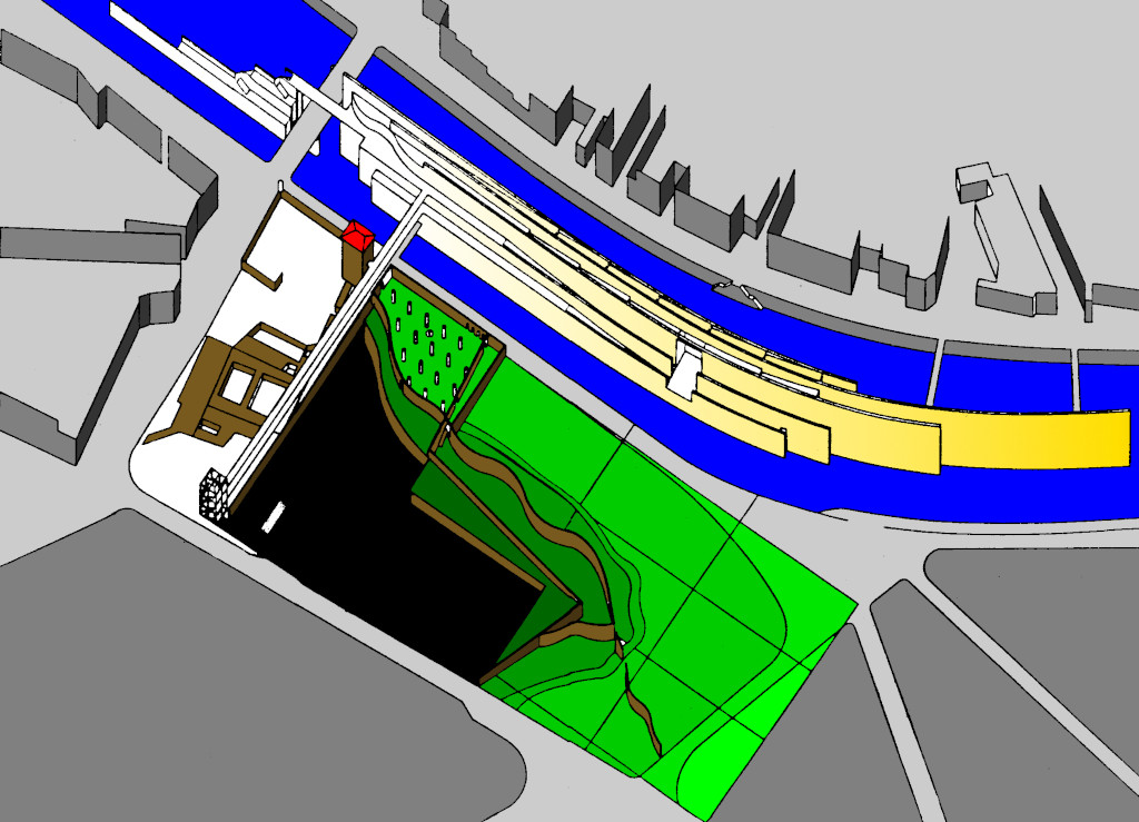 C’est précisément cette ambiguïté qui rend l’hypothèse de Soler – un musée dans l’eau – séduisante et singulière. Pas de stratégie d’effacement, au contraire, prendre appui sur la violence du site, la cohabitation abrupte entre le flux du fleuve, l’inertie de la montagne et la linéarité urbaine. Les Franciscains s’installèrent jadis au bord de l’eau parce qu’ils acceptaient les marges, les sols instables et les zones exposées ; Soler reprend cette condition mais, au lieu de la subir, il la transforme en structure même de l’architecture.