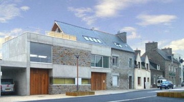 L'architecte Lionel Dunet est parvenu à inscrire l'extension résolument contemporaine d'une maison individuelle dans le cadre du paysage urbain traditionnel d'un village de Bretagne. Un résultat bluffant où le béton et la pierre donnent le ton d'une harmonie entre l'ancien et le neuf. ... [Lire la suite]